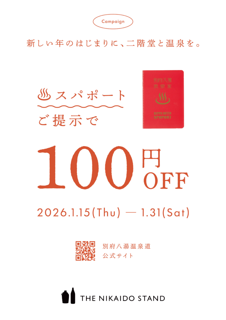 大分むぎ焼酎二階堂の専門スタンディングバー「THE NIKAIDO STAND」さんでは、下記の期間中にスパポートをご提示いただくと会計より100円引きになるキャンペーンを行います✨